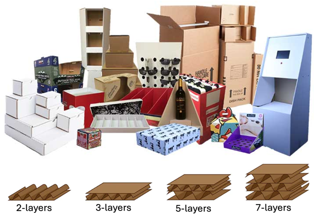 5-vrstvová lepenka (5VL): Určená pre ťažký tovar a náročný export, kde je potrebná vysoká pevnosť v tlaku.